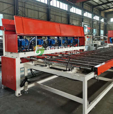 Máy cán này cán sợi thủy tinh, giấy, màng PVC và giấy bạc lên tấm thạch cao để tạo ra các sản phẩm hoàn thiện cho gạch trần và tấm vách ngăn.