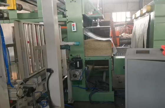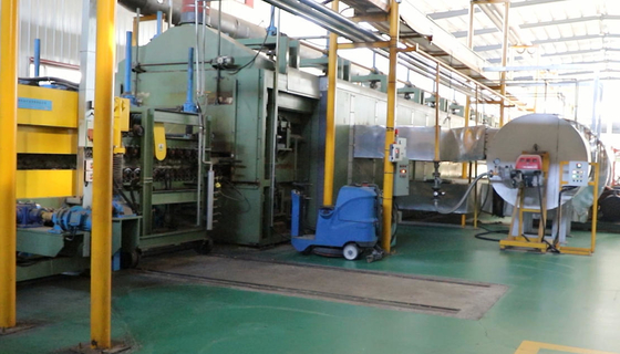 Nguyên liệu thô được sử dụng trong sản xuất len đá bao gồm đá bazan, đôlômit, chất kết dính, v.v. Nguyên liệu thô được nạp vào phễu bằng thang máy, và lò nung được nung nóng và nung chảy thành bể dòng chảy nóng chảy. Dòng dung nham được làm nguội và quay thành sợi bằng máy ly tâm, sau đó phun vào phòng tạo hình sợi. Chất kết dính được thêm vào trong quá trình phun, và các sợi được làm nóng bằng gió áp suất âm. Kéo xuống băng tải lưới để tạo thành tấm ban đầu. Băng tải lưới vận chuyển tấm ban đầu đến máy trải vải lắc lư để lắc vải. Tấm ban đầu sau khi lắc vải được vận chuyển đến lò đóng rắn bằng máy trải vải, và chạy về phía trước giữa các băng tải xích trên và dưới. Máy thổi khí nóng thổi khí nóng vào lò đóng rắn. Bông len trong lò được làm đông đặc, và các sản phẩm đông đặc được cắt, trước tiên là cắt dọc, sau đó là cắt ngang, và thành phẩm được đóng gói và đưa vào kho.
