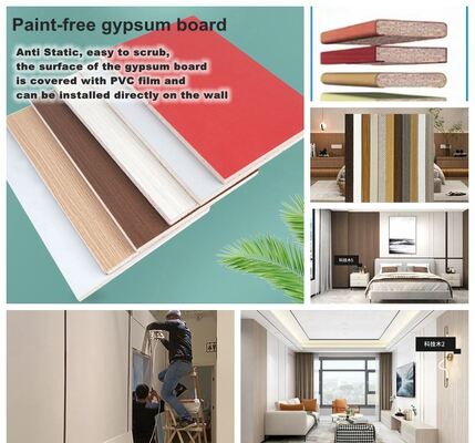 This production line specializes in surface laminating of boards with various thicknesses. The system applies PUR hot-melt adhesive to roll film material and laminates it onto substrates including PVC foam board, gypsum board, steel board, wooden board, and other compatible materials.